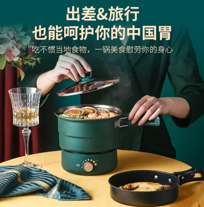 便携式电煮锅小型多功能锅分体式电火锅学生宿舍折叠旅行出差双锅304不锈钢